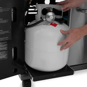 • Propane models have a pull-out tank drawer for easy changes plus an integrated storage shelf