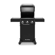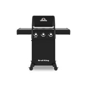 The Broil King® Crown™ 300 Series features a durable cast aluminum oven, 3 stainless steel Dual-Tube™ burners, stainless steel Flav-R-Wave™ cooking system, and electronic ignition. All Crown 300 series include heavy-duty 3-position cast iron cooking grids, black drop-down side shelves, and an enclosed black cabinet base.