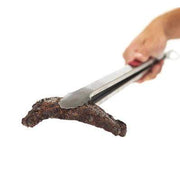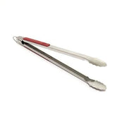 20 in. Stainless steel tong with red soft grip rubber inserts. Grip your food on the grill with ease. Manual lock saves on storage space.