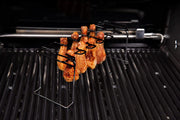 A convenient non-stick coated wire wing rack with folding legs, the best way to roast chicken legs and wings on the grill without the hassle of flipping, turning or sticking. For wings and drumsticks.